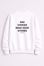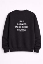 Για όσους δεν παίζουν safe και δεν ντρέπονται για το παρελθόν τους. Αυτό το unisex crewneck με quote στάμπα “Bad Choices Make Good Stories” δίνει street χαρακτήρα και αληθινό vibe. Άνετη εφαρμογή, clean design και outfit που κουβαλάει εμπειρία. Για nights, λάθη και ιστορίες που δεν λέγονται σε όλους. Dark luxury αισθητική, με ειρωνεία και swagger. Το φοράς και δείχνεις ότι έζησες. Και θα το ξανακάνεις.