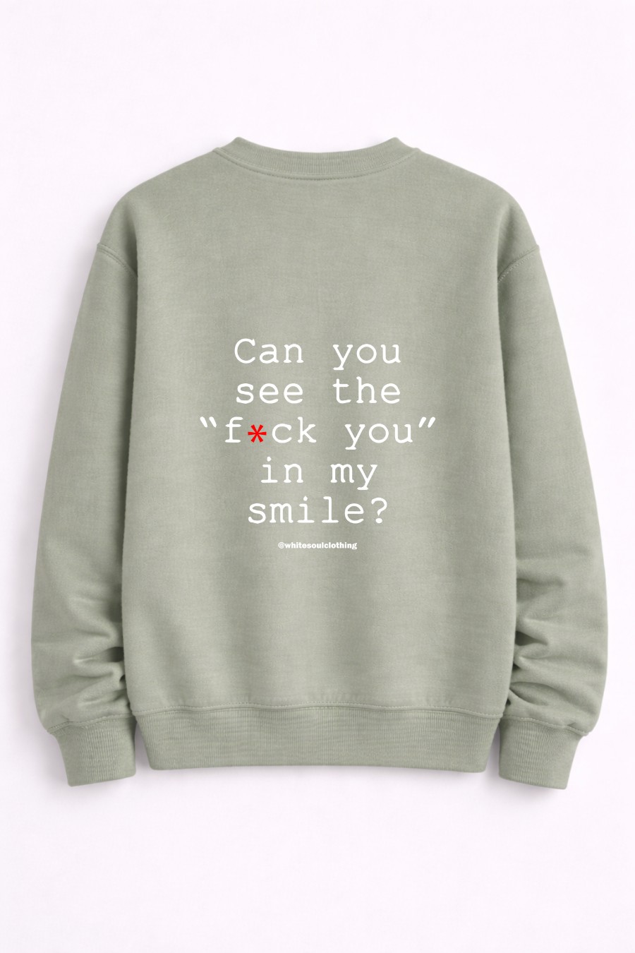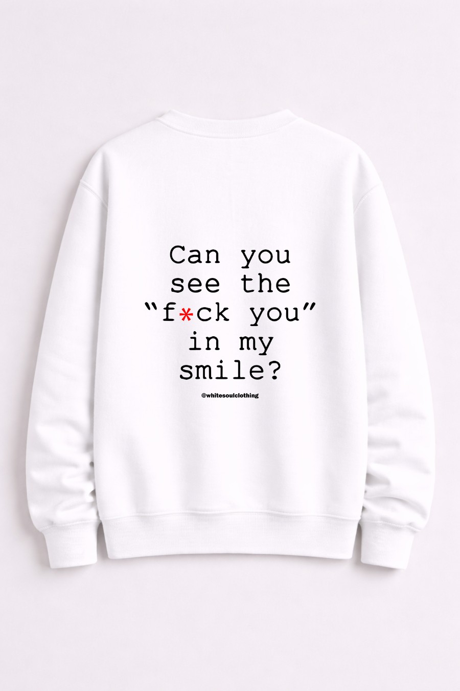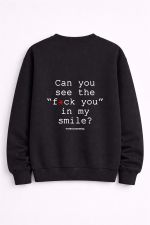 Χαμόγελο γλυκό, μήνυμα ξεκάθαρο. Αυτό το unisex crewneck με quote στάμπα “Can You See the Fuck You in My Smile” είναι ειρωνικό, sharp και απόλυτα street. Άνετη εφαρμογή, clean urban αισθητική και outfit που παίζει με την πρόκληση χωρίς να το παρακάνει. Για όσους μιλάνε με βλέμμα, όχι με λόγια. Το φοράς και καταλαβαίνουν.