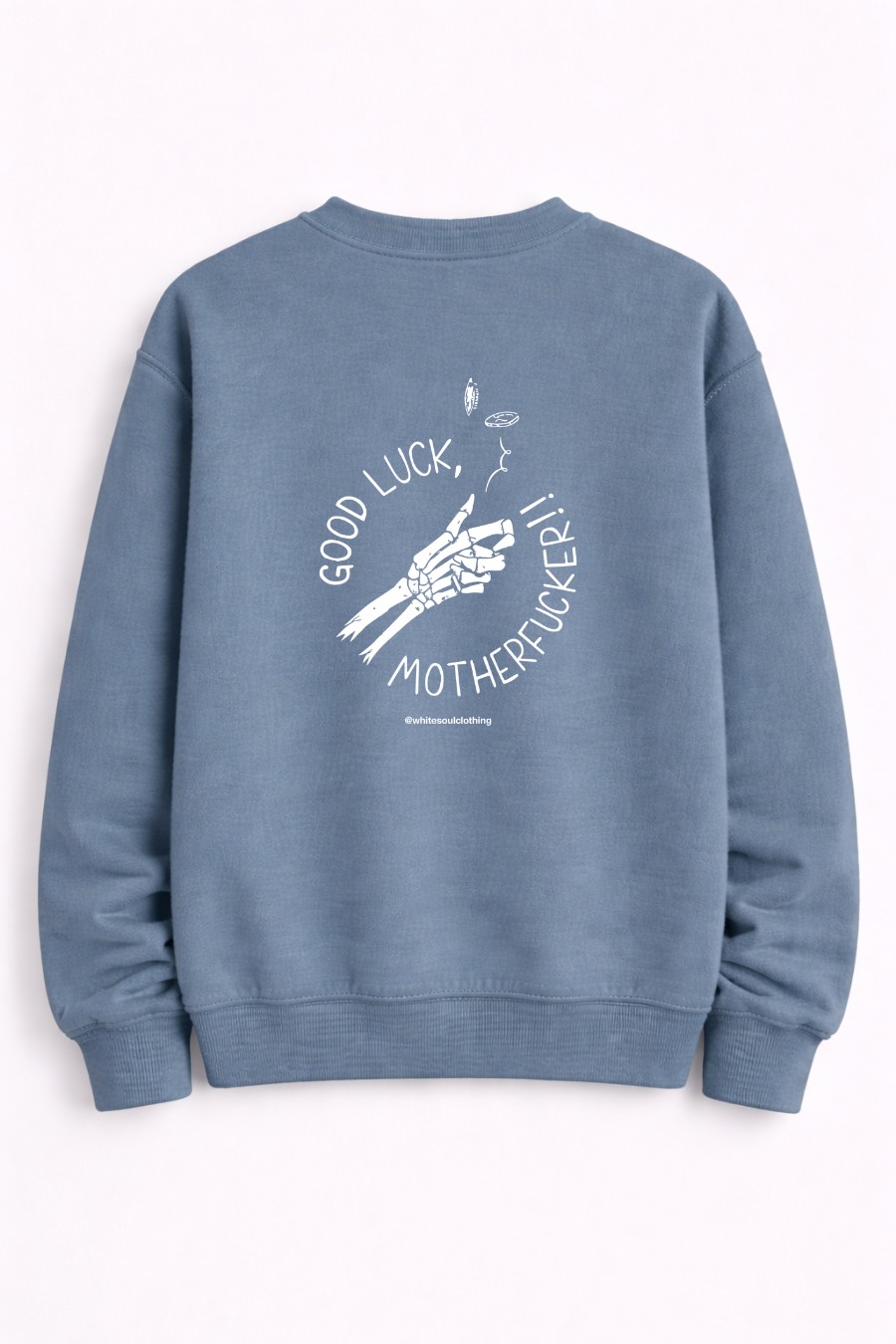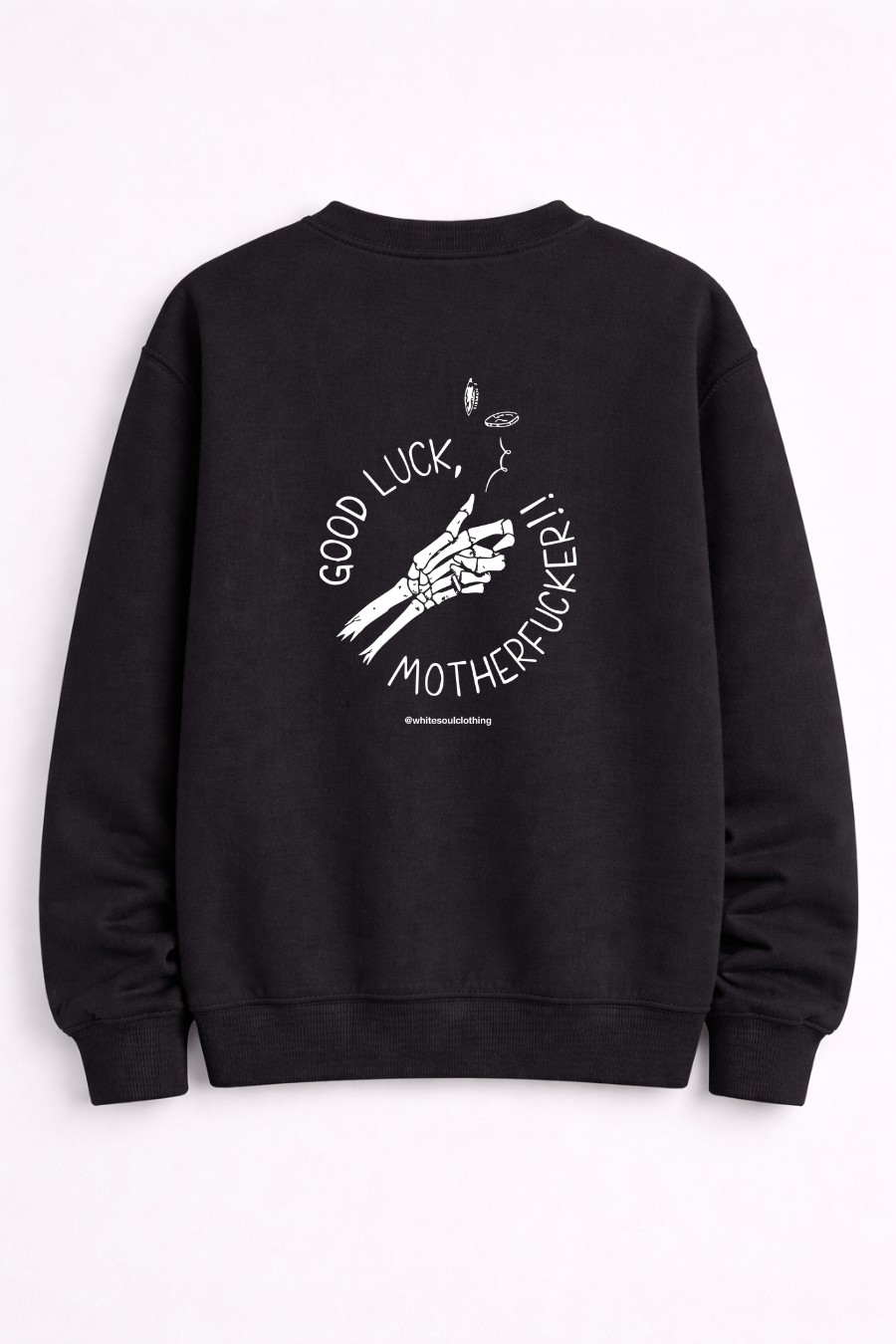 Δεν είναι ευχή, είναι προειδοποίηση. Αυτό το unisex crewneck με quote στάμπα “Good Luck Motherfucker” έχει ωμή ενέργεια και καθαρό street attitude. Άνετη εφαρμογή, urban αισθητική και outfit που μιλάει πριν μιλήσεις. Ιδανικό για μέρες που δεν παίζεις nice. Το φοράς και τελειώνει η τύχη.