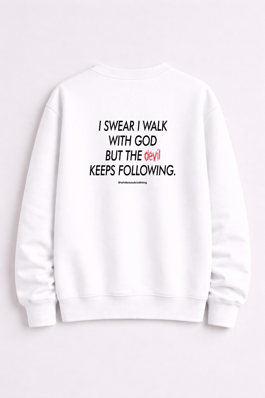 Για όσους κρατάνε ισορροπία ανάμεσα στο φως και στο σκοτάδι. Αυτό το unisex crewneck με quote στάμπα “I Swear I Walk God but the Devil Keeps Following” έχει dark urban χαρακτήρα και έντονο vibe. Άνετη εφαρμογή, clean design και outfit που κουβαλάει ιστορία. Σιωπηλό αλλά απειλητικό.