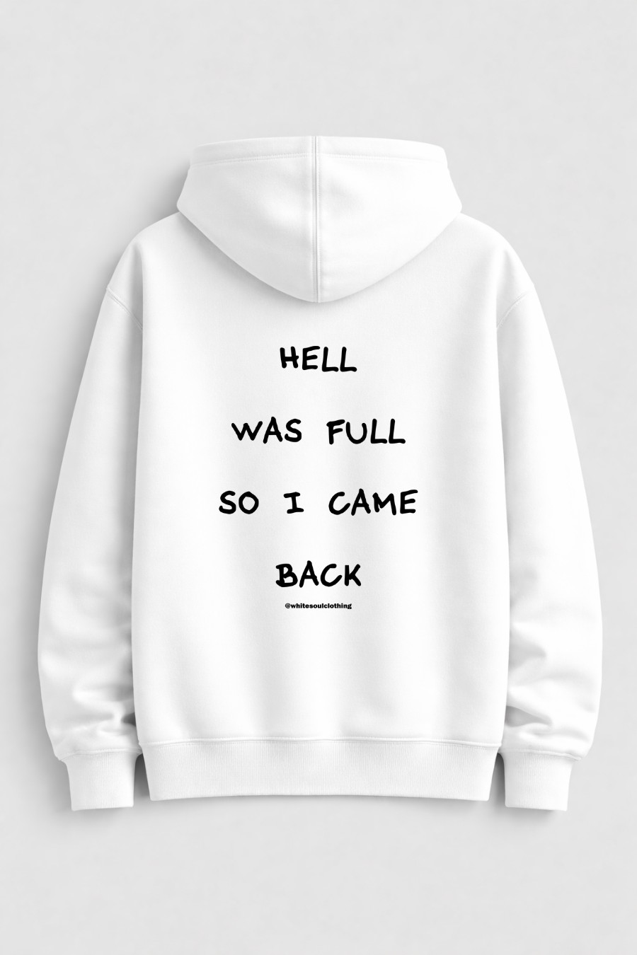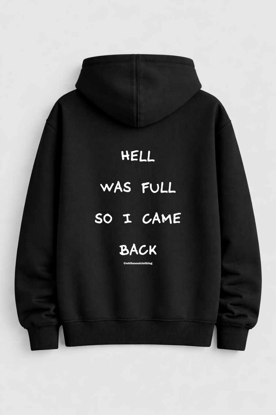 Για εσένα που η παρουσία σου είναι απλά... ασταμάτητη! Το hoodie "Hell was full so i came back" είναι το απόλυτο statement επιστροφής. Ένα edgy σχέδιο με δόσεις αυτοσαρκασμού και σκοτεινού χιούμορ, ιδανικό για όσους θέλουν να δηλώσουν ότι κανένα εμπόδιο (ούτε καν η κόλαση) δεν μπορεί να τους κρατήσει μακριά από το να κυριαρχούν στο street style της πόλης.
