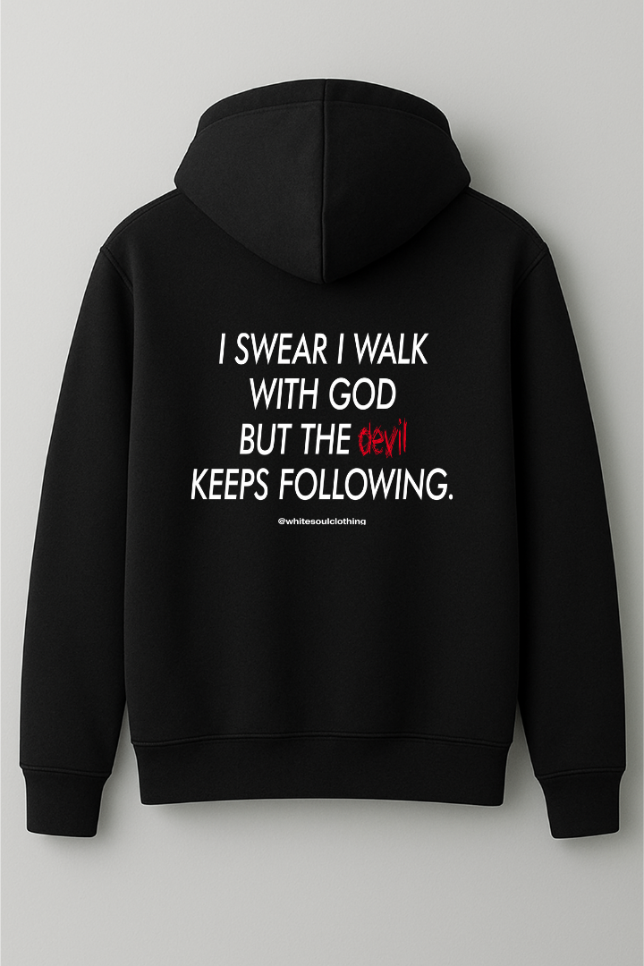 I swear i walk god but the devil keeps following hoodie