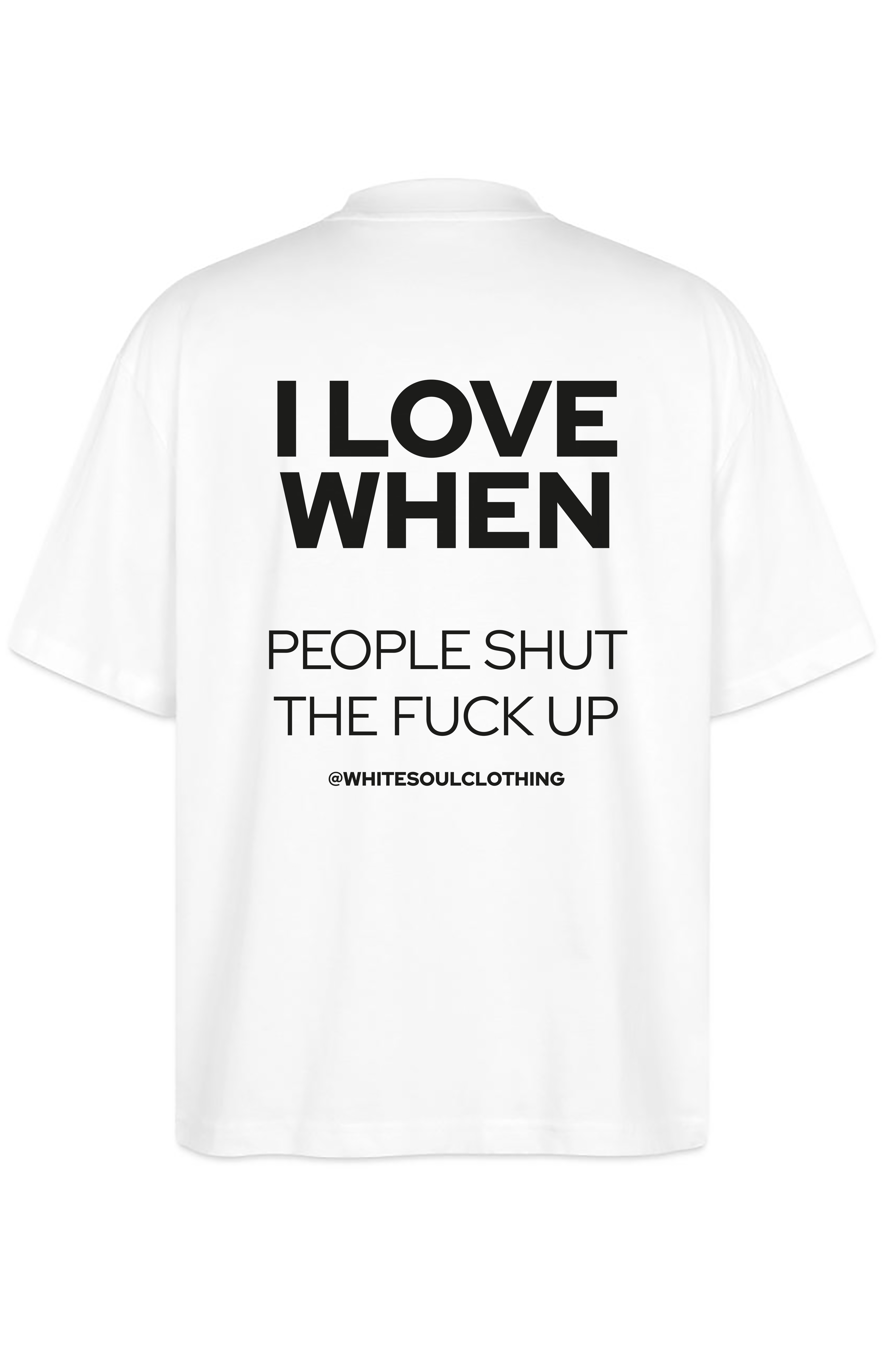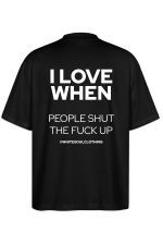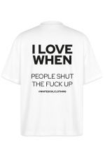 Η ηρεμία είναι πολυτέλεια και μερικές φορές η αγαπημένη σου στιγμή της ημέρας είναι... η απόλυτη σιωπή. Το oversize tee "I love when people shut the fuck up" είναι η πιο ειλικρινής δήλωση για εκείνες τις μέρες που η υπομονή σου έχει εξαντληθεί, αλλά το στυλ σου παραμένει αλώβητο. Φόρεσέ το και άσε το μπλουζάκι σου να κάνει τη δύσκολη δουλειά για σένα.