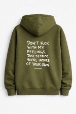 Don’t fuck with my feelings energy. Unisex urban zip up hoodie με quotes και στάμπα για outfit που δεν παίζει παιχνίδια.